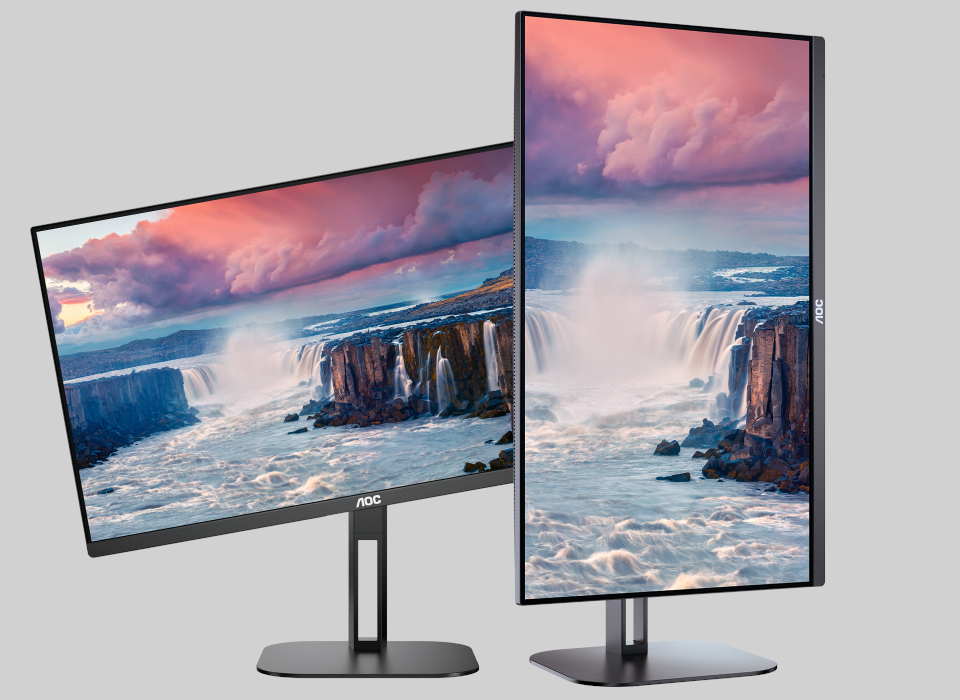 Відчуйте комфорт! Поворотні підставки AOC з регулюванням висоти та нахилу допоможуть вам вибрати найбільш зручне та корисне для здоров'я положення для монітора.