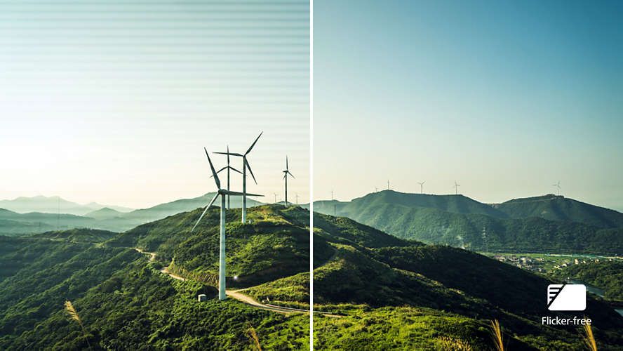 Через те, як регулюється яскравість у дисплеях зі світлодіодним підсвічуванням, деякі користувачі помічають мерехтіння на екрані, що спричиняє втому очей. Технологія Philips Flicker-free використовує нове рішення для корекції яскравості та зменшення мерехтіння для більш комфортного перегляду.