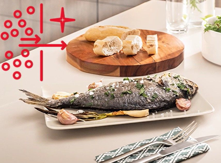 Дихайте вільно! Чисте повітря без запаху наповнить вашу кухню і зробить користування духовкою приємнішим! Каталізатор запаху знаходиться в димоході духової шафи, в якому під час смаження або випікання безперервно спалюються частинки жиру і бруду, запобігаючи їхньому виведенню назовні. Процес видалення запахів надзвичайно ефективний, оскільки повітря в димоході нагрівається до 450-480°C. В результаті замість неприємного запаху гару або жиру в повітрі з'являється запах чистоти. У повітрі немає жиру, тому він не осідає на меблях і шторах, а це означає, що вам доведеться менше прибирати.
